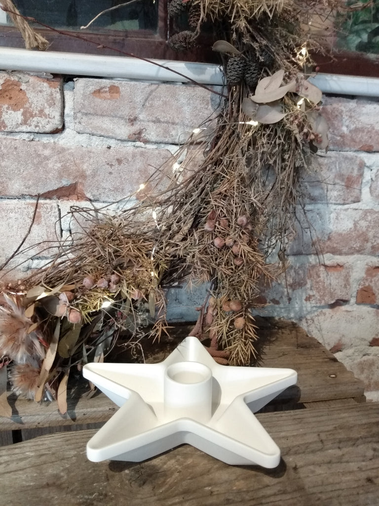 Prachtige witte kaarsenstandaard in de vorm van een ster.